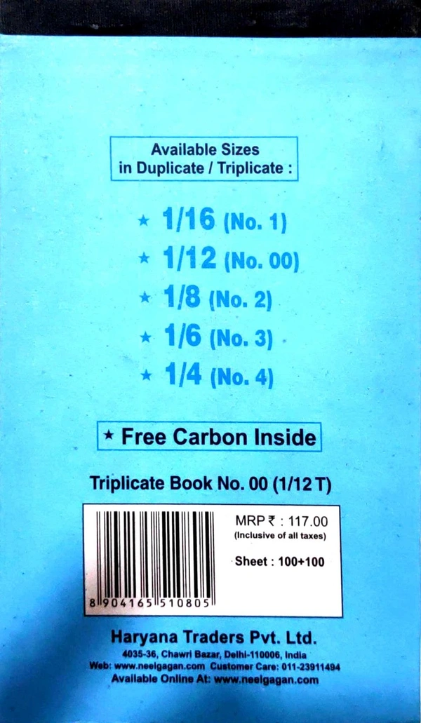 Neelgagan Triplicate Notebook No. 00 - Pages 100 sheet triplicate
