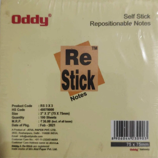 Oddy Re-Stick 3X3 - Yellow