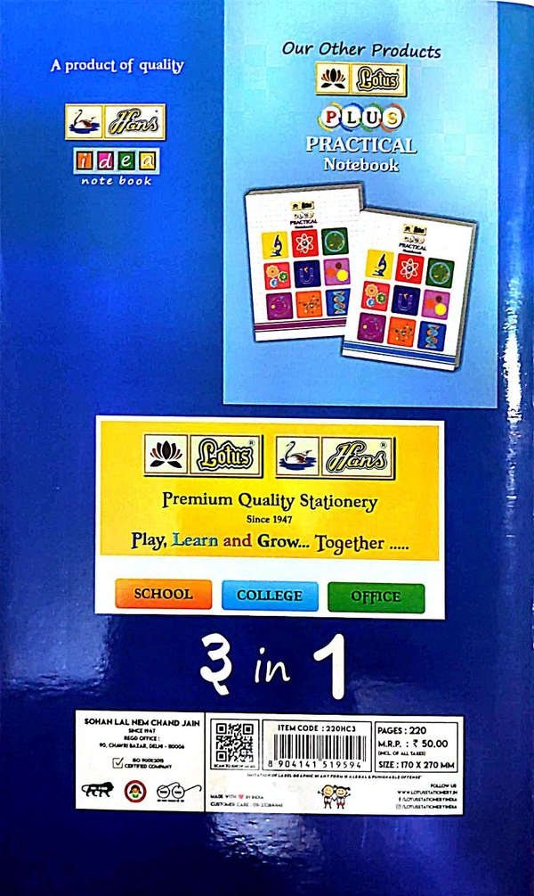 Sajal A4 Notebook - 3 in 1 - Pages 220